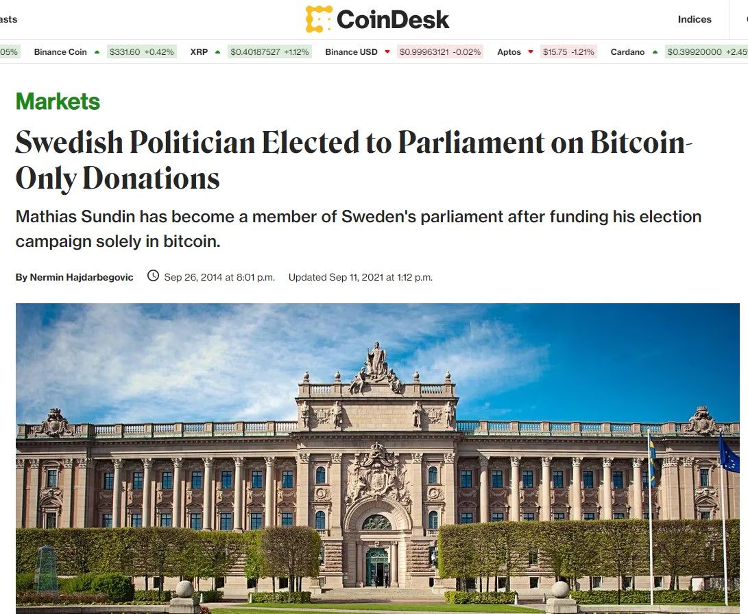 Then I came up with the idea of only accepting campaign donations in Bitcoin and suddenly I got to talk about it both in international media and with the voters in my home county of Östergötland.